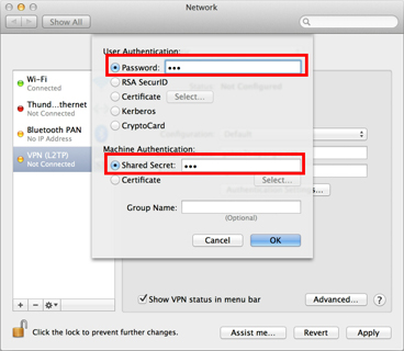 (3 个字母)。在 "Shared Secret" 字段也指定 "vpn"
